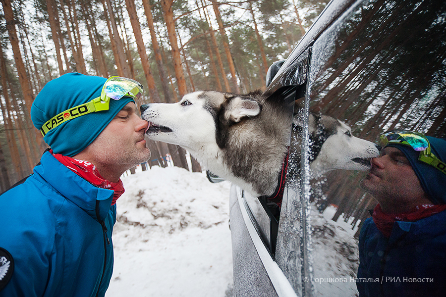 23.02.2020. Участница Чемпионата и Первенства Тюменской области по зимним видам ездового спорта и ее собака породы хаски после финиша на базе отдыха «Пруд Лесной» в городе Тюмени. (Автор фото Наталья Горшкова)
