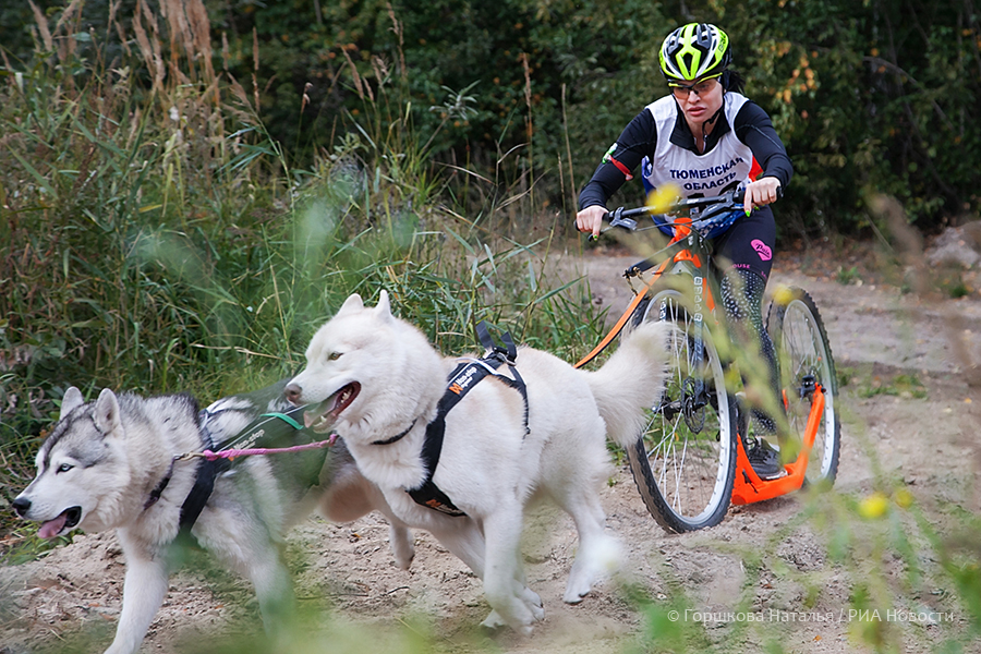 23.02.2020. Участница Чемпионата и Первенства Тюменской области по зимним видам ездового спорта со своей собакой породы хаски во время прохождения дистанции на базе отдыха «Пруд Лесной» в городе Тюмени. (Автор фото Наталья Горшкова)